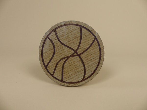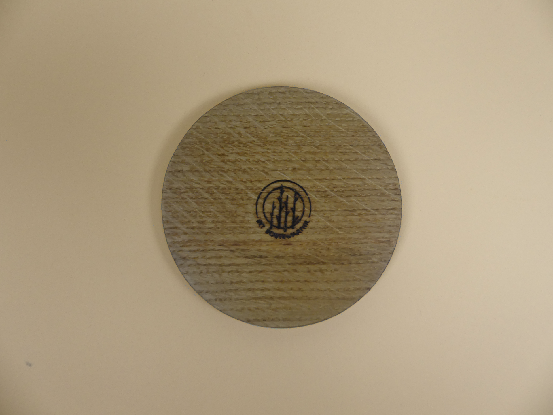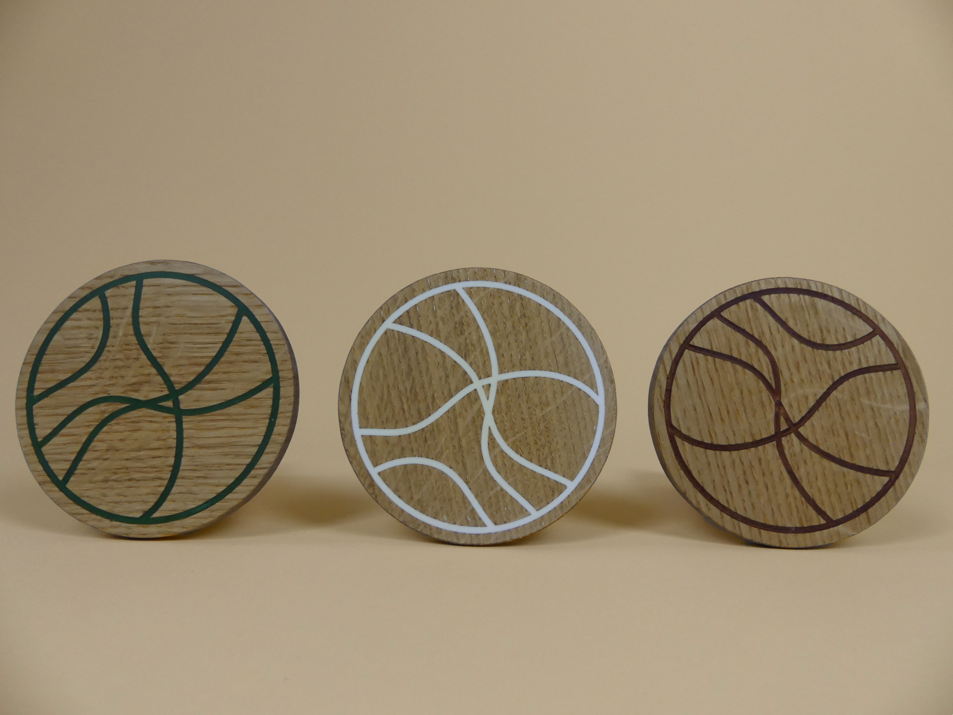 Onderzetter gemaakt uit eik, opgevuld in diverse kleuren.
